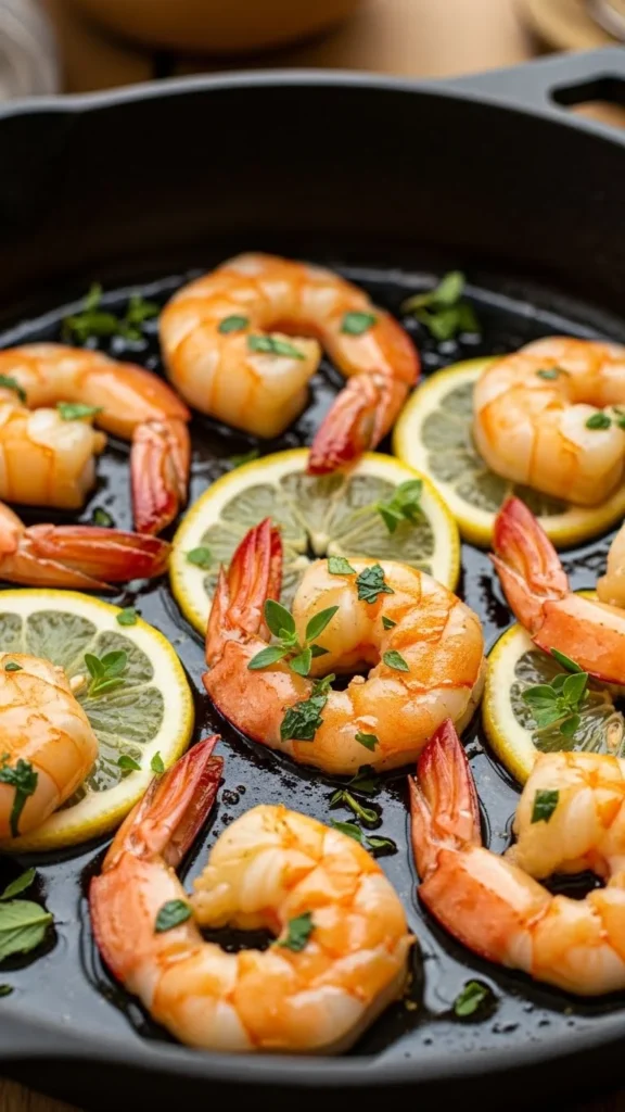 - Add shrimp and cook 2–3 minutes per side.