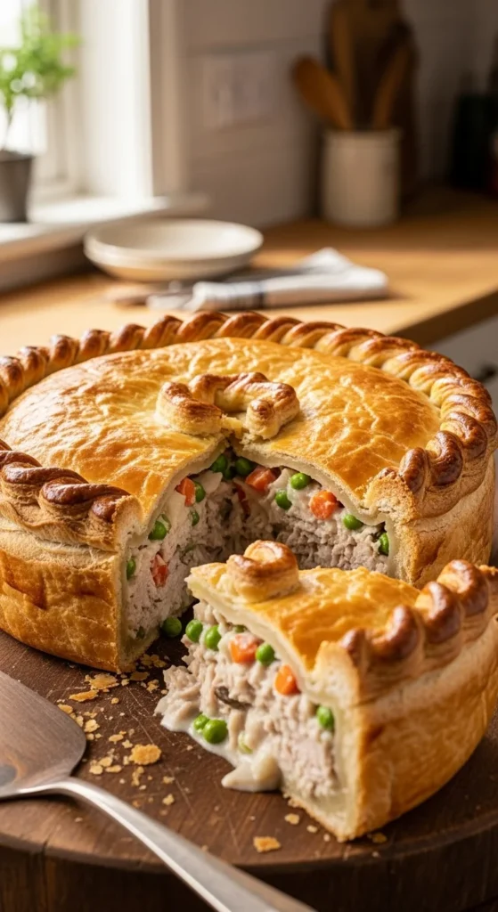 Mixing turkey with a bit of stock keeps the filling moist. This pie is practical after holidays or roast dinners. It’s filling without feeling heavy.