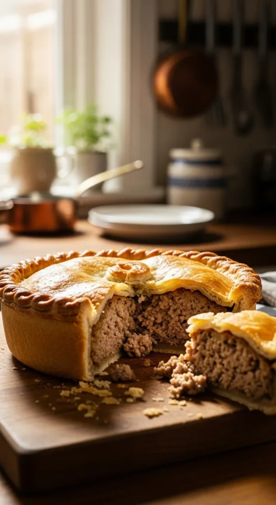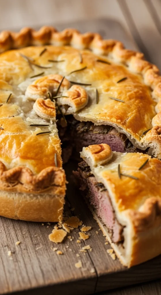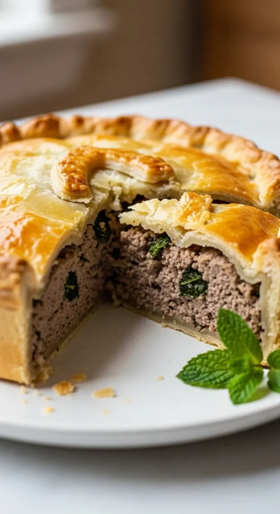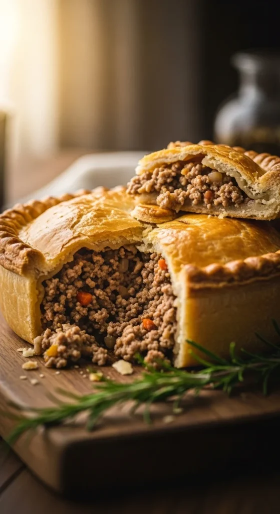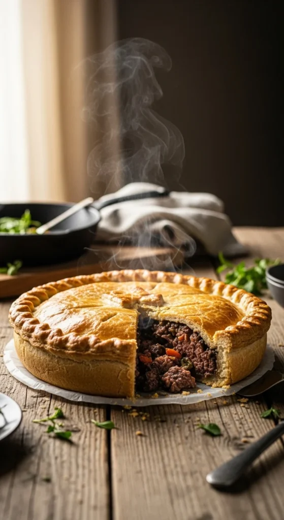 Game meat pies feel hearty and rich. Mixing game with beef helps balance flavor and cost. The flaky crust adds structure.