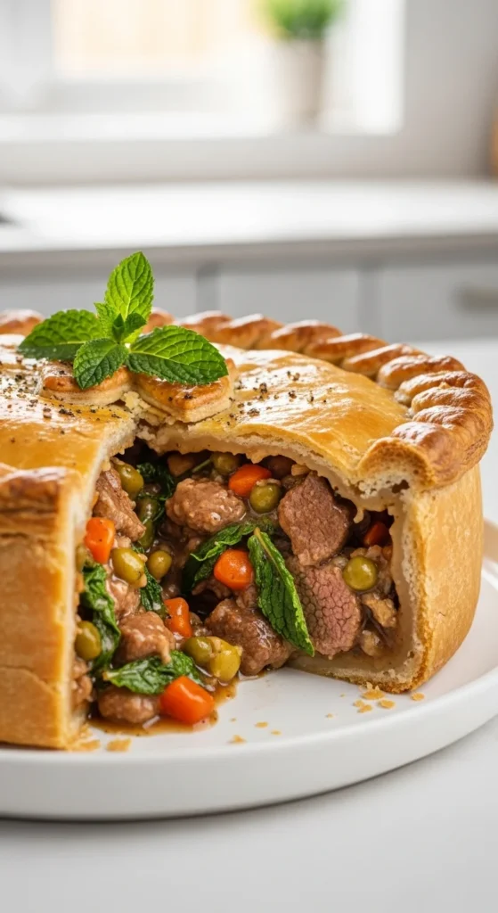 Lamb and mint create a familiar pairing. Mint adds freshness that balances the richness of the meat. The pastry keeps the pie structured.