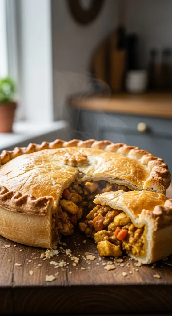 Chicken curry pies bring gentle spice into a familiar format. The pastry softens the seasoning and keeps the dish balanced.