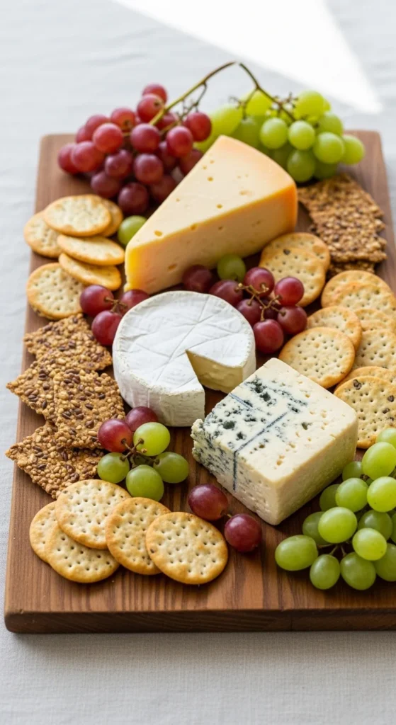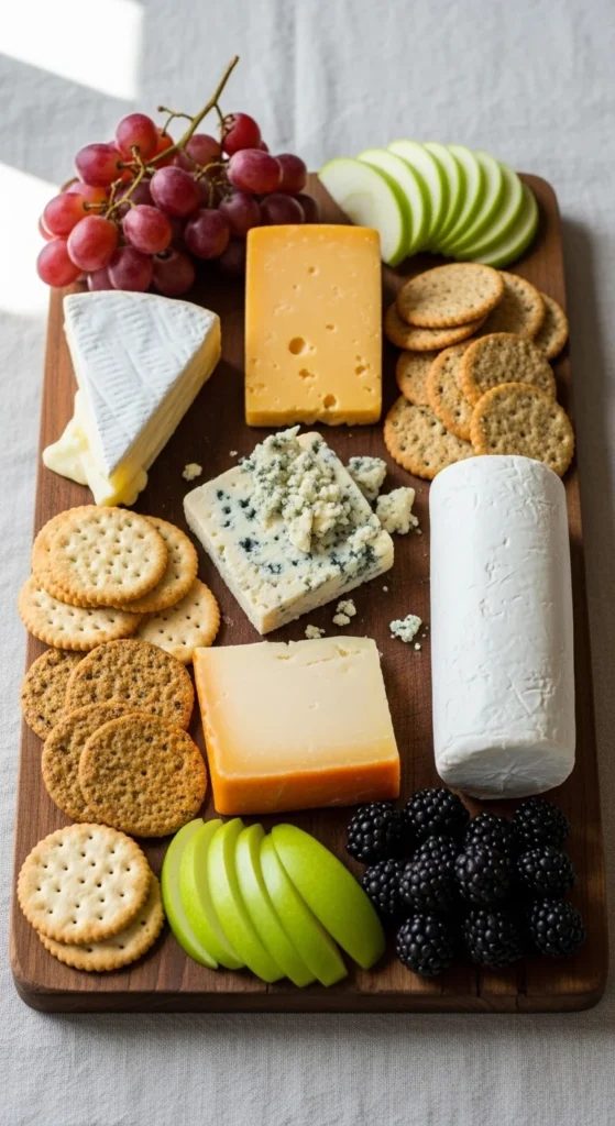 Starting with three cheeses creates instant structure. A soft cheese, a semi-hard cheese, and a firm cheese offer variety without confusion. This simple formula prevents overcrowding and gives your board a clear foundation.