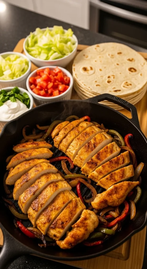 Chicken fajitas work well on a sheet pan because everything roasts at the same pace. The peppers and onions soften and sweeten, and the chicken browns without needing constant attention. It’s hands-off cooking that still feels like a real dinner.