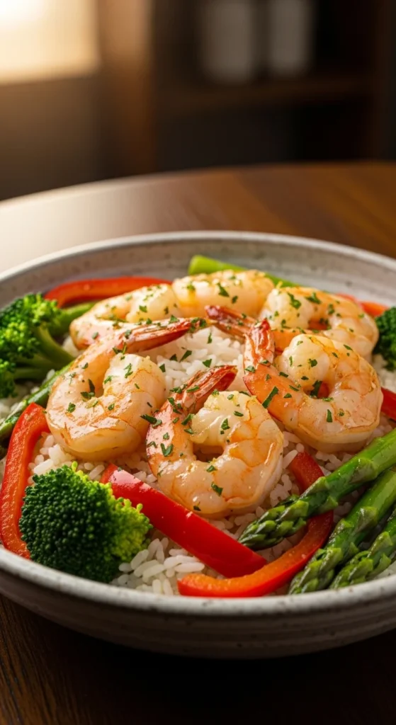 Shrimp is one of the fastest proteins for dinner. Garlic butter coats it quickly, and the whole dish feels rich without needing a long cook time. Bowls keep serving easy and reduce cleanup.