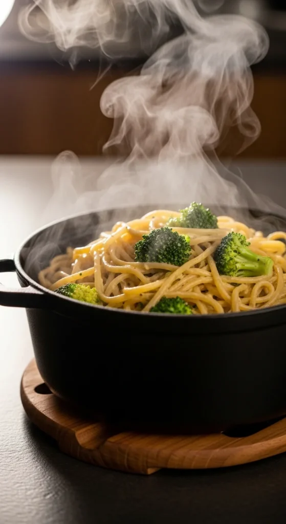 This one-pot pasta keeps everything in one place, which makes cleanup easy and the sauce naturally thick. Broccoli cooks right alongside the noodles, so you get a full dinner feel without juggling multiple pans. The result is creamy, comforting, and steady enough for weeknights.