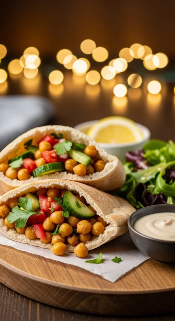 Chickpea pockets are quick because most of the work is mixing and assembly. Mashed chickpeas take on seasoning easily and feel filling. It’s a strong “no big grocery run” dinner.