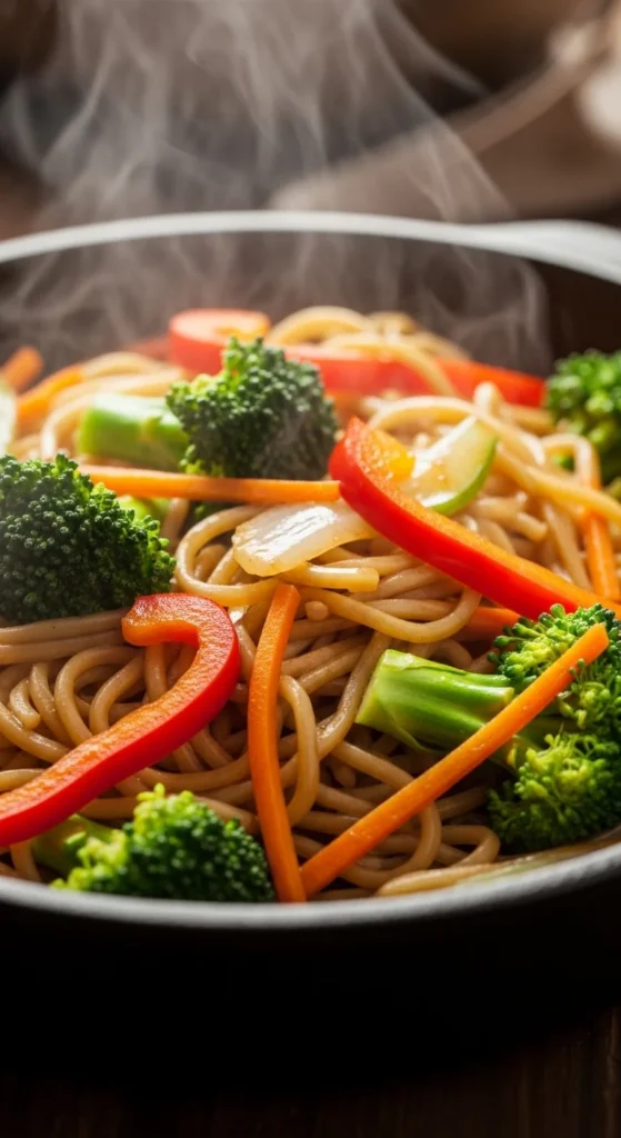 Noodles cook quickly, and they’re easy to pair with whatever vegetables are already in the fridge. A simple sauce with soy sauce and a little sweetness gives the familiar lo mein taste. Everything feels fast but filling.
