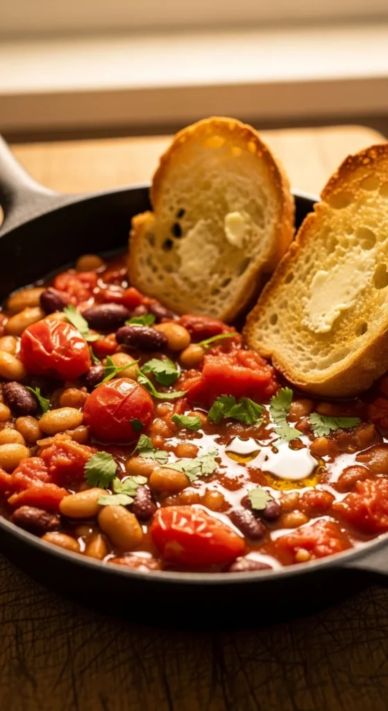 Beans simmer quickly in a tomato base and create a hearty, spoonable dinner. The sauce thickens fast, and the dish feels warming without being heavy. Toast makes it feel complete and easy to serve.