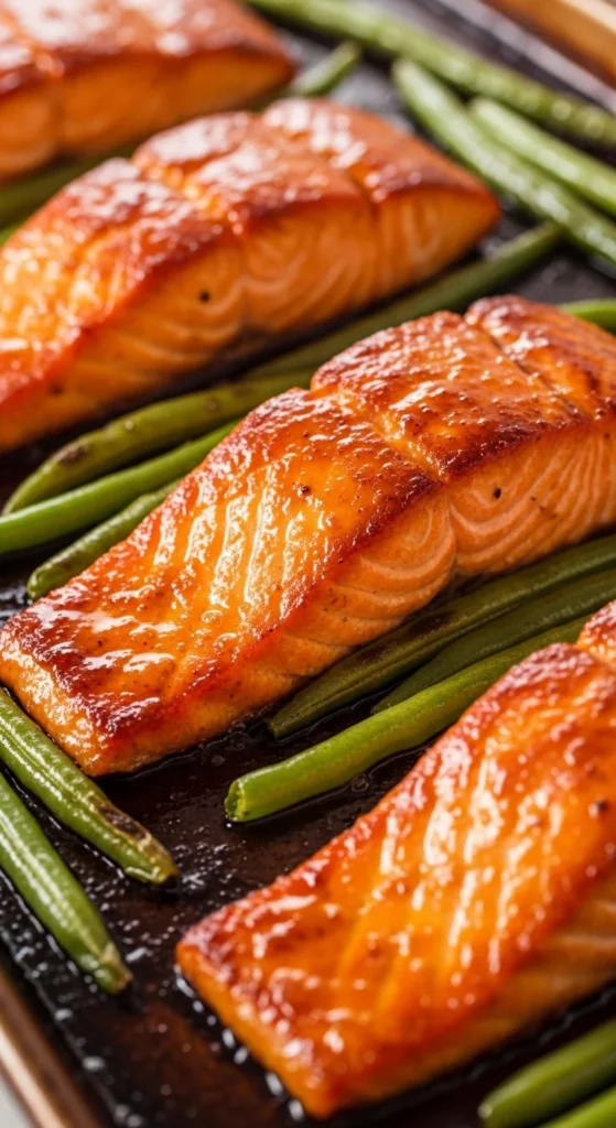 Salmon cooks fast and works perfectly for under-30 dinners. A simple glaze gives it a richer taste while the fish stays tender. Green beans roast quickly and keep a pleasant bite, so the tray feels complete.