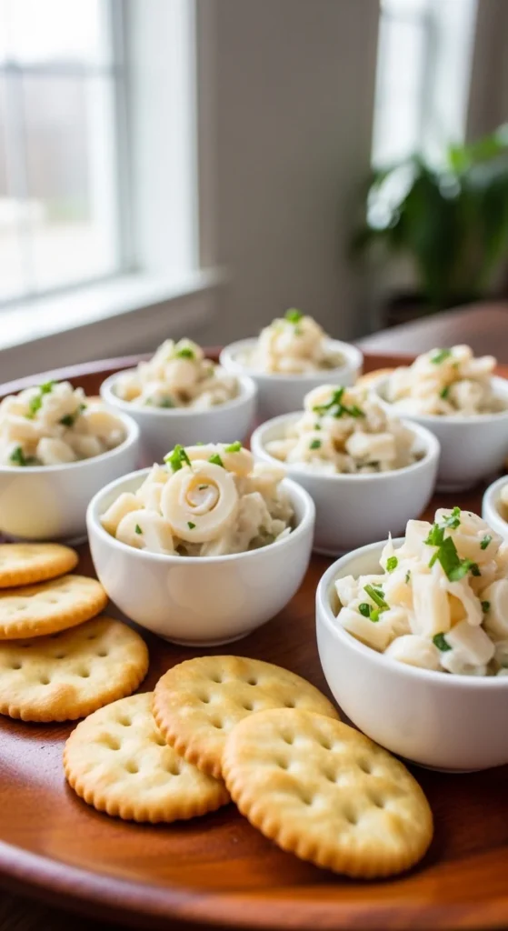 Heart of palm mimics the texture of crab and works well in creamy mixtures. These bites provide a vegan option that surprises guests. They also assemble quickly.