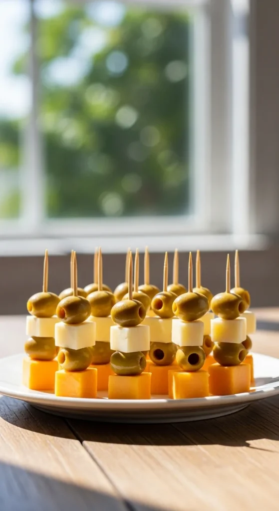 4. Mini Cheese and Olive Skewers