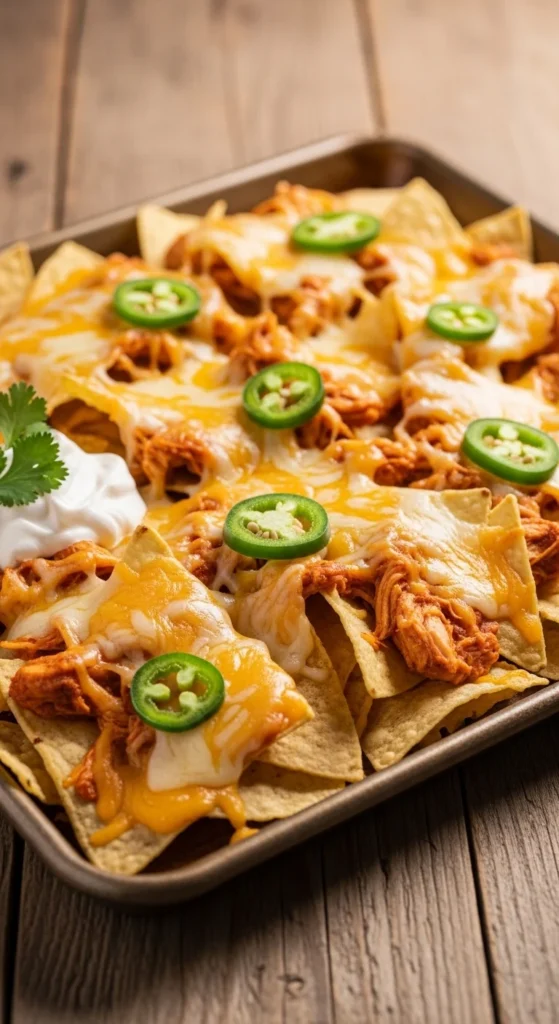 Sheet pan nachos work well when you need to feed a group fast. Everything bakes together on one tray, which saves time and limits cleanup. These nachos feel hearty enough to stand in as the main snack of the night.