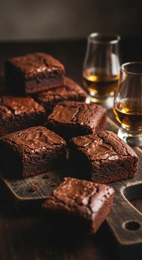 Using a modest splash of whiskey keeps the balance right. These brownies bake evenly in a standard pan and slice cleanly once cooled. They suit evening desserts or shared platters.