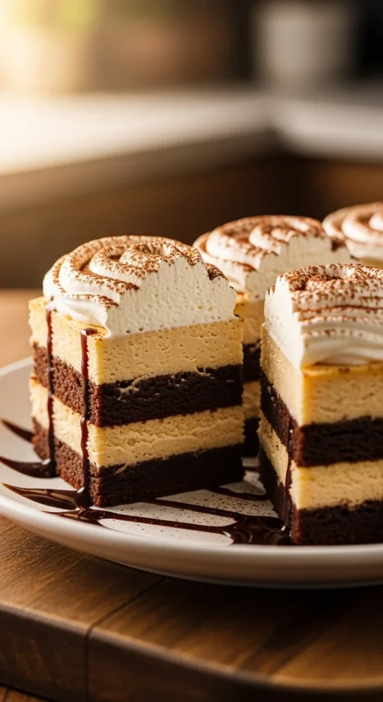 A creamy cheesecake layer softens the richness of chocolate brownies. Irish cream flavors the topping gently, keeping the dessert balanced. The layers bake together smoothly.