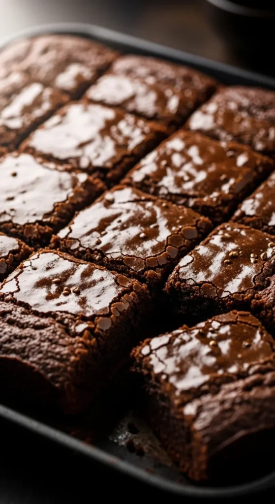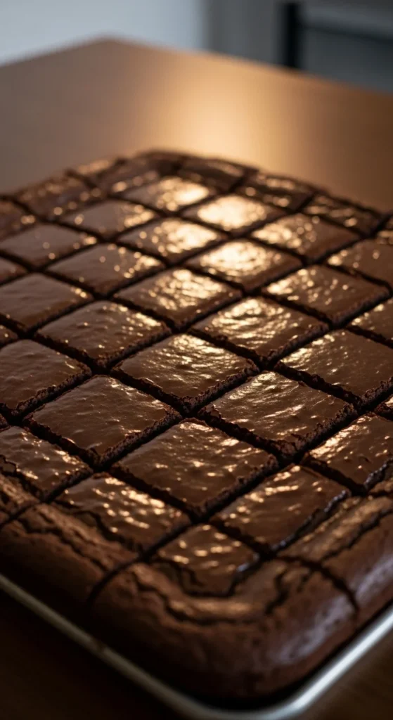 Traybake brownies are practical and easy to portion. Guinness deepens the chocolate taste and supports a fudgy center. The top stays smooth and slightly glossy.