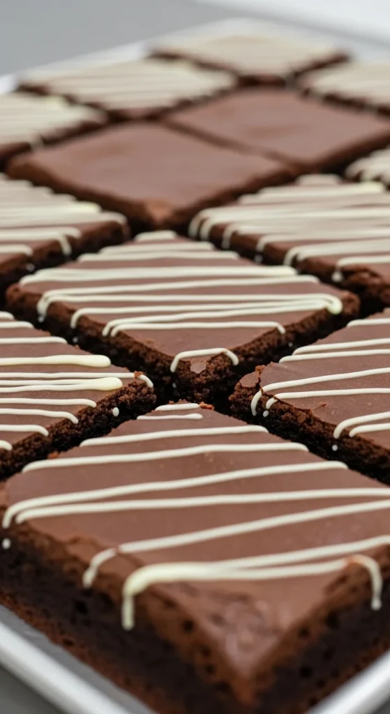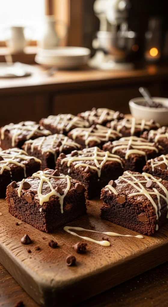 Traybake brownies offer easy portioning. Irish cream swirls give gentle sweetness. The texture stays fudgy.