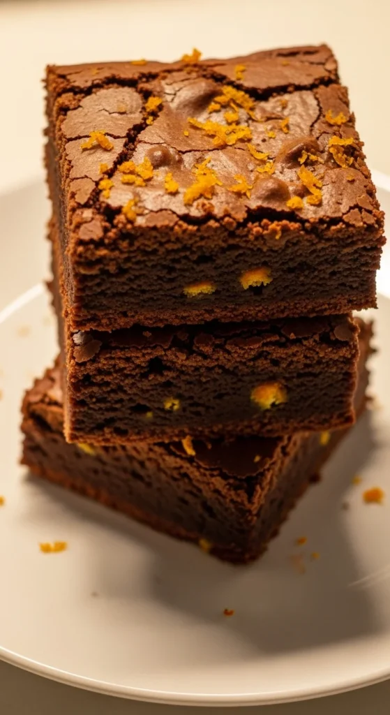 Use zest sparingly. These brownies suit afternoon desserts. Serve plain or lightly dusted.