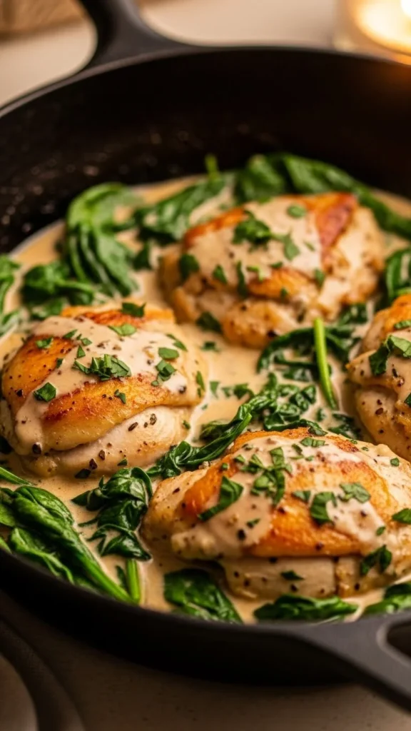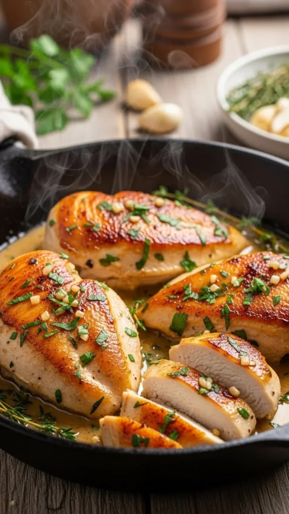 - Season chicken with salt and pepper, then sear for 5–6 minutes per side.