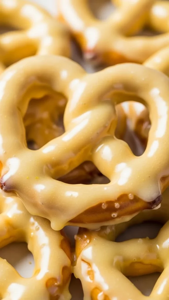 - Dip pretzels in glaze.