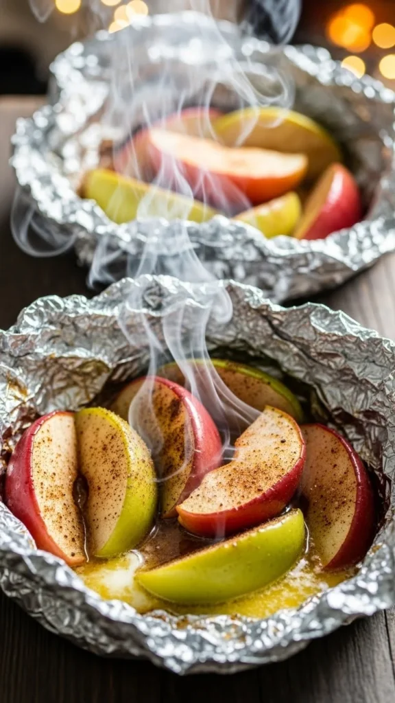 - Wrap apples, sugar, cinnamon, and butter in foil.