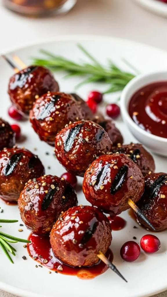 - Grill meatballs over medium heat for 10 minutes, brushing with sauce as they cook.