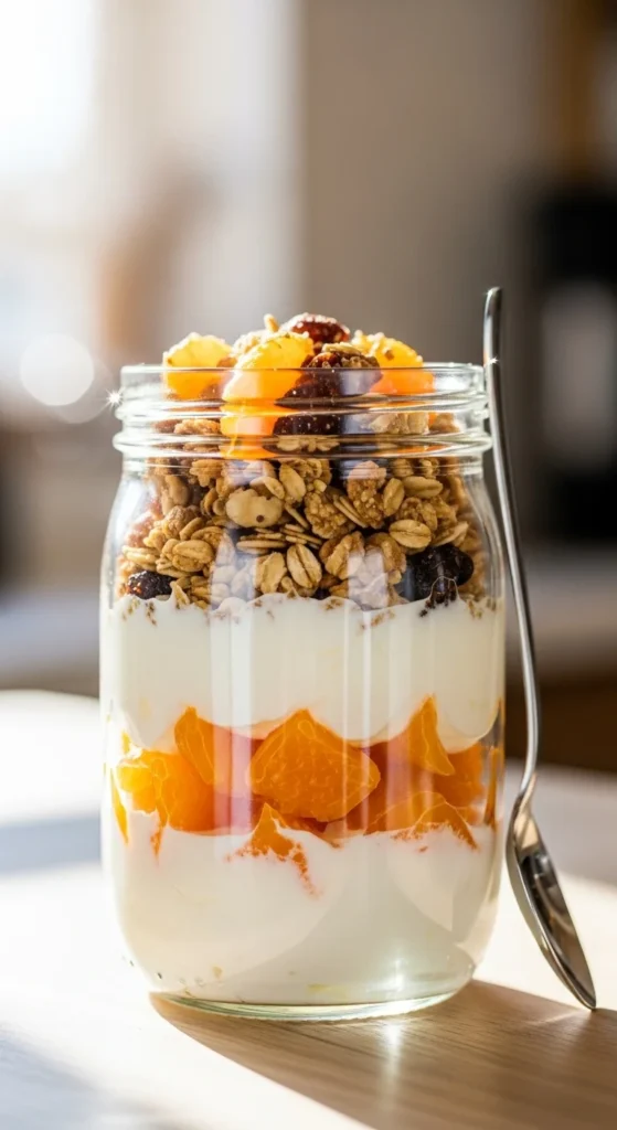 Orange and vanilla yogurt create a creamsicle-style flavor. This parfait feels playful and refreshing.